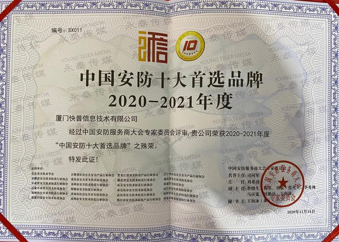 此次峰會,快普以先進(jìn)的產(chǎn)品理念和優(yōu)秀的市場服務(wù)獲得業(yè)界的一致好評,并榮獲“中國安防十大品牌”,感恩安防行業(yè)客戶的支持,快普將堅(jiān)定使命,持續(xù)為新基建企業(yè)提供強(qiáng)有力的信息化管理支持。