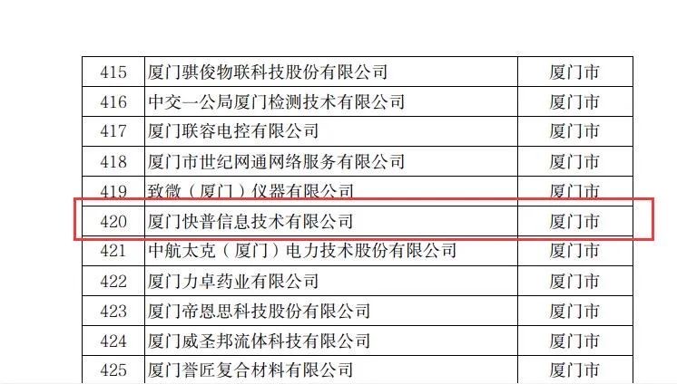 近日,福建省科學(xué)技術(shù)廳網(wǎng)站公示了“2022年福建省科技小巨人企業(yè)”名單,廈門(mén)快普信息技術(shù)有限公司以突出的自主創(chuàng)新能力、優(yōu)秀的技術(shù)研發(fā)成果、良好的業(yè)績(jī)和市場(chǎng)占有率,從全省遴選企業(yè)中脫穎而出,成功入選!