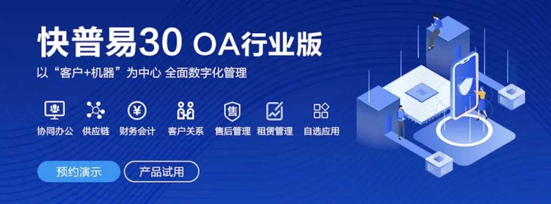 融合了全國大量OA企業(yè)成功的管理經驗和成熟的業(yè)務模型,以“客戶+機器”為中心提供數字化轉型解決方案,全面解決銷售、服務、租賃等多種業(yè)務模式的管理需求,以及企業(yè)經營核算分析。